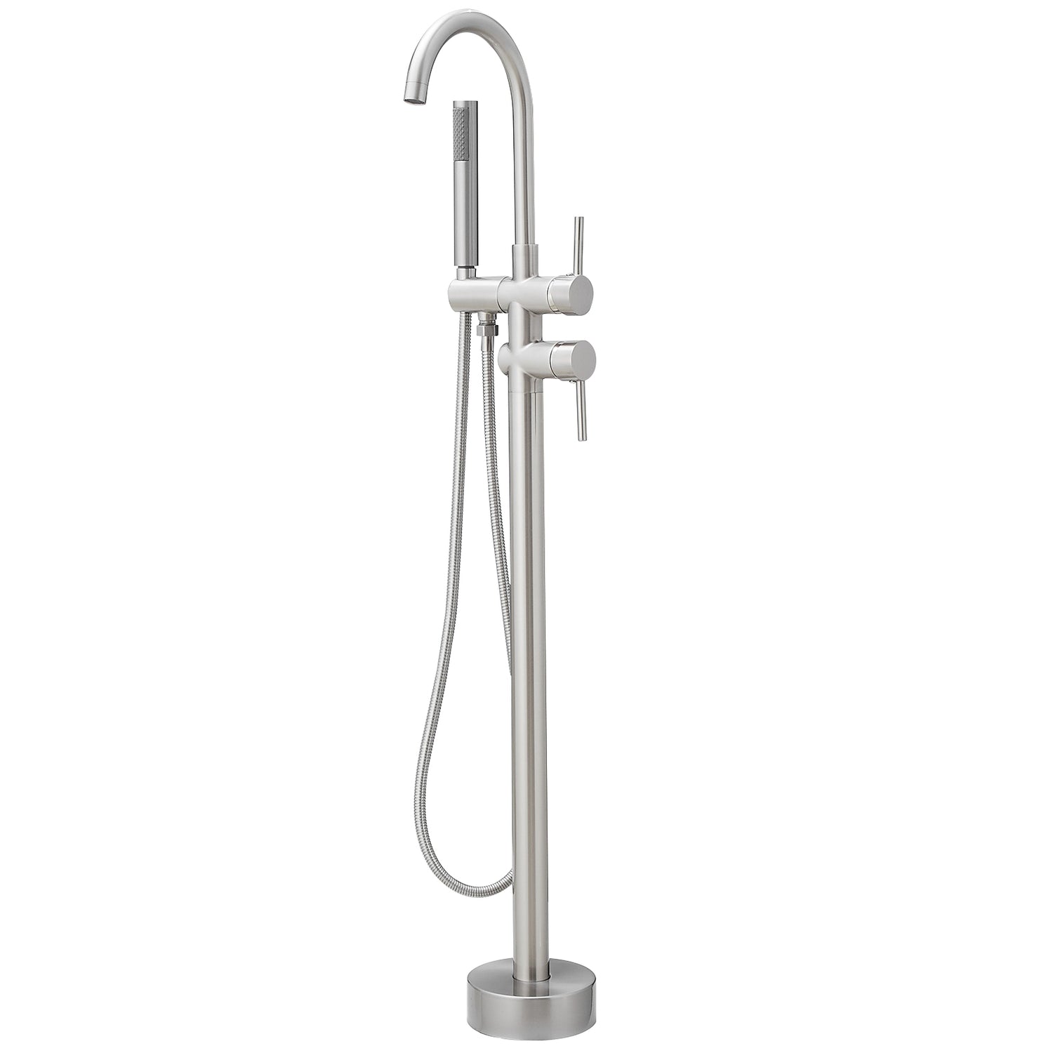 Single-Handle Freestanding Tub Faucet with Hand Shower in Brushed Nickel