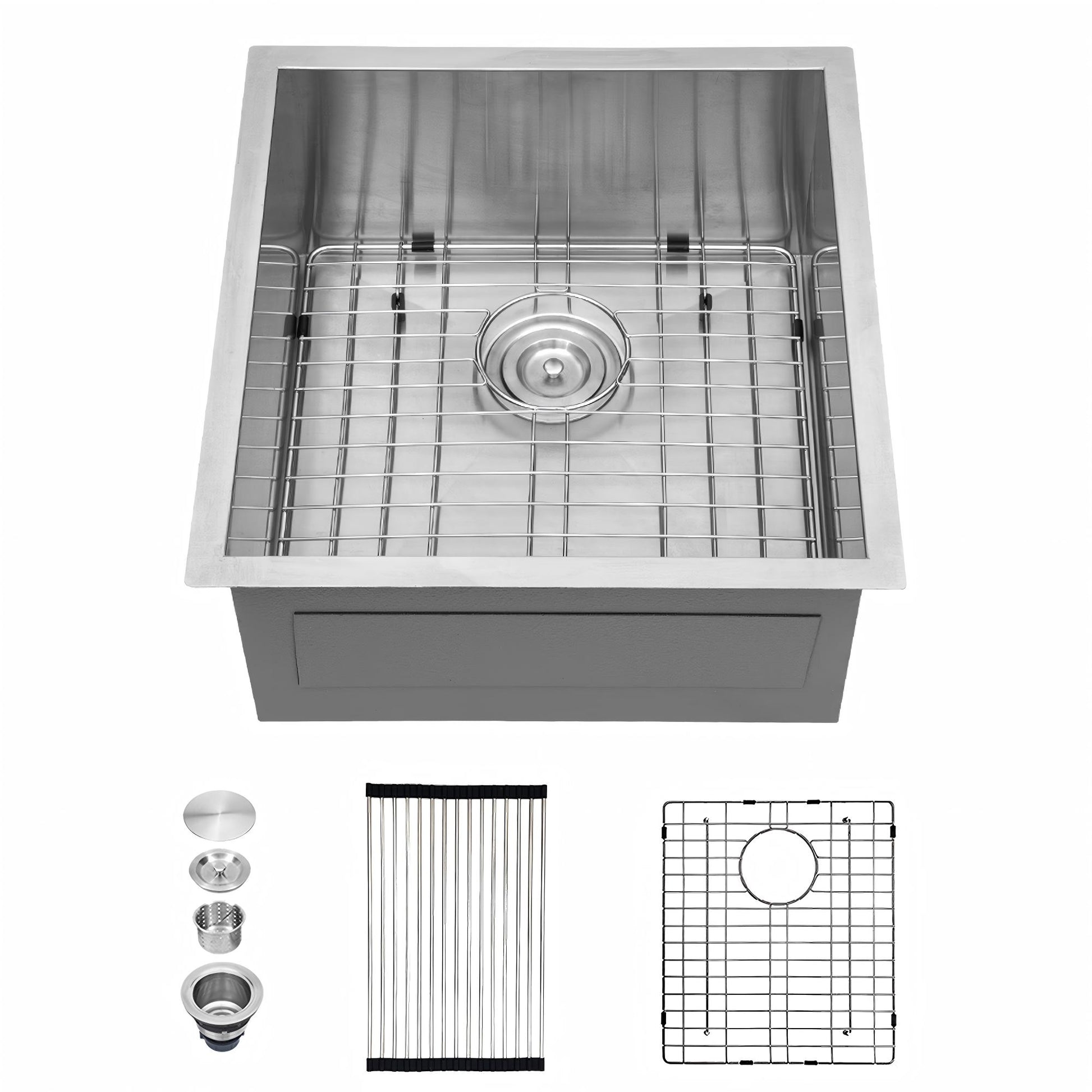 - Comes with this kitchen sink: 1 x 304 stainless steel dish grid, 1 x drain assembly, 1 x drying rack